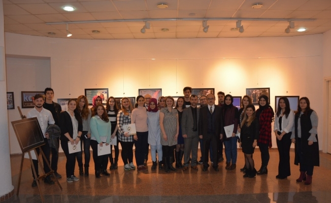 Sergide fotoğrafları yer alan öğrencilere, Rektör Yardımcısı Prof. Dr. İlhan Genç, Gölyaka Meslek Yüksekokul Müdürü Yrd. Doç. Dr. Oğuz Kara ve Grafik Tasarım Programı öğretim görevlileri tarafından teşekkür belgeleri takdim edildi.