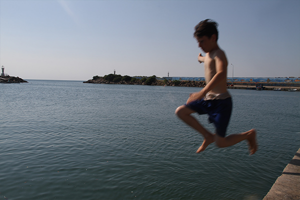 Deniz suyu sıcaklığının da 22 dereceye ulaştığı Akçakoca’da tatilciler denize girerek serinlemeye çalıştı.