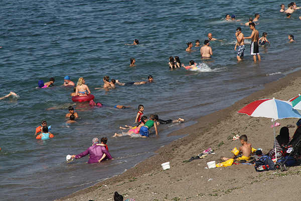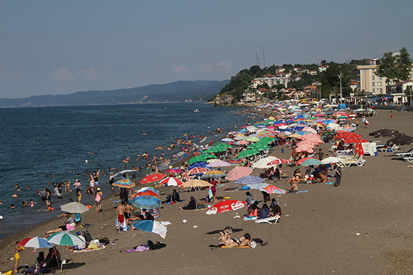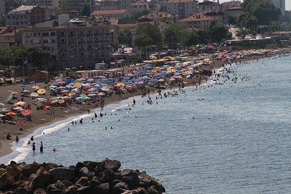 Yaklaşık 38 kilometre sahili olan ve 3 Mavi Bayraklı plajı ile Batı Karadeniz'in en önemli turizm ilçesi olan Akçakoca'da, hava sıcaklığın 35 dereceye kadar yükselmesi nedeniyle yerli ve yabancı turistler sahilleri doldurdu.