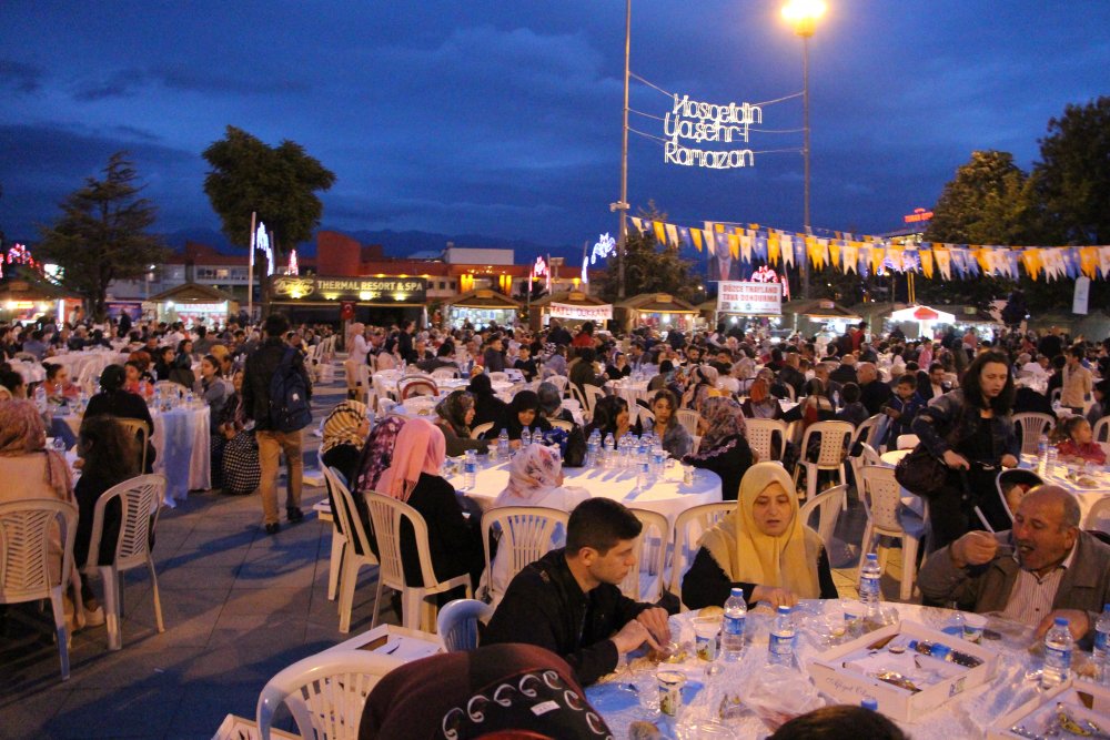 Kur’an-ı Kerim okunmasının ardından okunan ezanla birlikte binlerce kişi meydanda iftarını birlikte açtı.