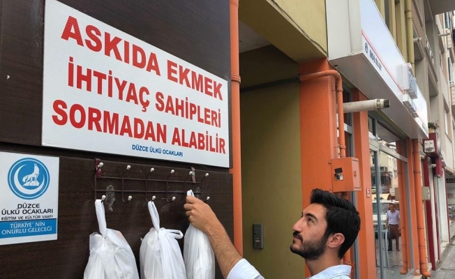 MHP Genel Başkanı Devlet Bahçeli’nin ekmeğe yapılan zam tartışmaları ardından Ankara’dan başlattığı, ‘Askıda Ekmek’ projesine Düzce Ülkü Ocakları da destek verdi. Düzce Ülkü Ocakları Başkanı Ayhan Bülbül, ülkü ocakları binası girişinde alan oluşturarak fırınlardan aldığı ekmekleri bu alana astı.