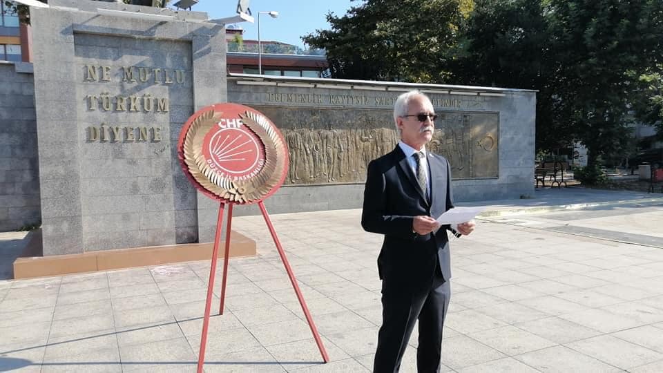 Törende bir konuşma yapan CHP İl Başkanı Haluk Demir, “Demokrasiye geçişin ilk adımı, Cumhuriyetin, Atatürk ilke ve inkılaplarının yılmaz savunucusu olan Cumhuriyet Halk Partimizin, halkın partisinin 97. yaşı kutlu olsun.  Cumhuriyet Halk Partisi, 97 yıl önce bugün çağdaş Türkiye’nin temellerini atmış, Ulu Önder Mustafa Kemal Atatürk önderliğinde cumhuriyeti kurarak, Türkiye demokrasisini inşa etmiştir. CHP, eşit haklara sahip, onurlu insanların yaşadığı bir Türkiye’nin garantisidir. Yokluklar, yoksunluklar, işgallerle çökmekte olan bir ülkenin kurtuluş mücadelesi için Eylül 1923’de Halk Fırkası olarak hayat bulan yolculuk, 1924 yılında Cumhuriyet Halk Fırkası ve 1935’de de Cumhuriyet Halk Partisine dönüşmüştür” dedi.