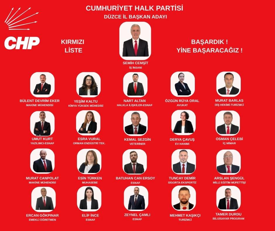 Düzce Gençlik ve Spor İl Müdürlüğü Konferans Salonunda saat 13:00’da başlayacak olan CHP Düzce İl Başkanlığı Kongresi öncesinde tüm hazırlıklar devam ediyor. Mevcut İl Başkanı Özcan Dağıstanlı ve il başkanlığı döneminde Düzce’ye tarihinde ilk kez bir Milletvekili Kazandıran CHP eski İl Başkanı Semih Cemşit’in aday olduğu kongrede, listelerde belli oldu.