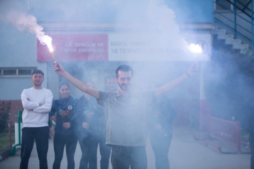 Şampiyonlar, müsabakaların ardından akşam saatlerinde Düzce’ye gelişlerinde 18 Temmuz Kapalı Spor Salonu önünde kulüp yöneticileri, sporcuları aileleri ve vatandaşlar tarafından coşkulu şekilde karşılandı.