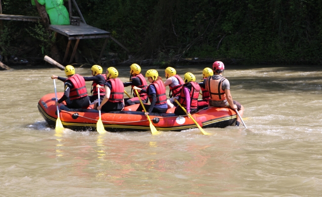 Dokuz değirmen köyündeki rafting teksilerine Türkiye’nin her tarafından gelenler doğanın nimetini doya doya yaşıyorlar.