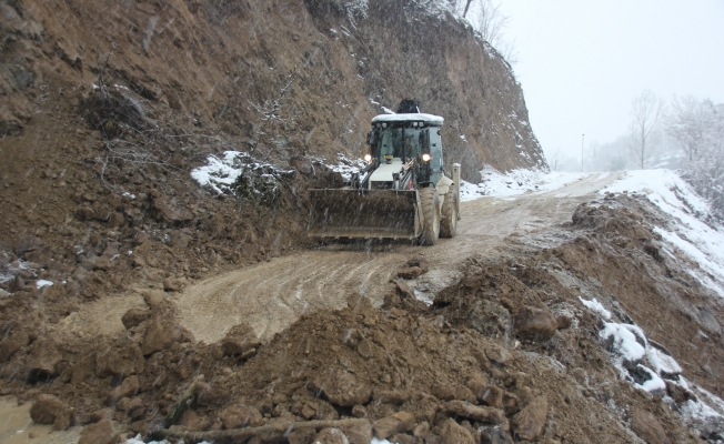 Düzce'nin Yığılca ilçesinde etkili olan yoğun kar yağışı heyelana neden oldu.